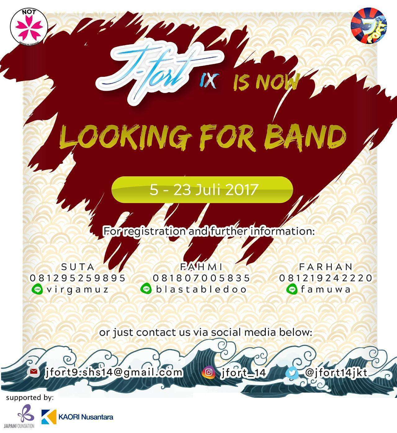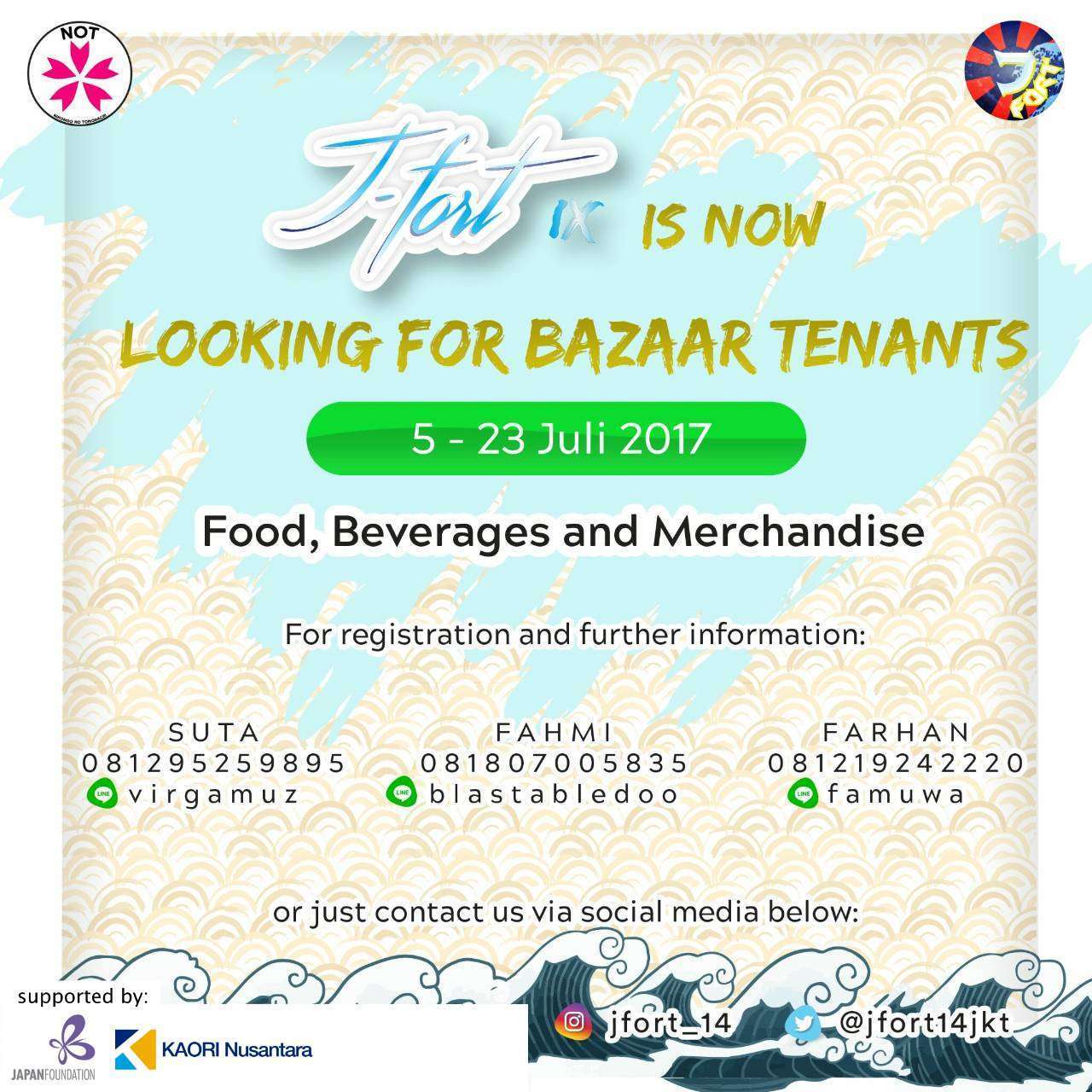 J-FORT 9 akan diselenggarakan pada hari Sabtu 29 Juli 2017 mendatang, bertempat di SMAN 14 Jakarta, Jl. SMA XIV Cililitan Keramat Jati Jakarta Timur 13640. Acara akan diselenggarakan pada pukul 09.30 WIB sampai selesai. Tiket masuk dibanderol sebesar 15000 rupiah, dengan presale seharga 10000 rupiah.