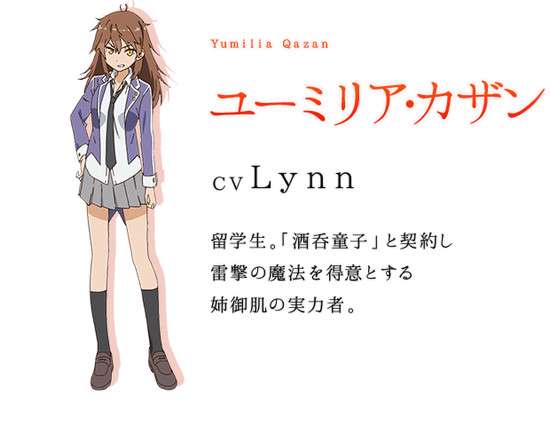 LYNN sebagai Yumilia Qazan, seorang gadis pindahan dari luar negeri yang dipilih oleh cerita rakyat “Shuten-dōji”. Dia memiliki sikap seperti kakak perempuan.