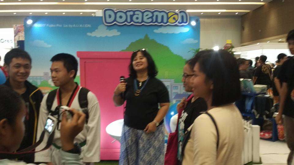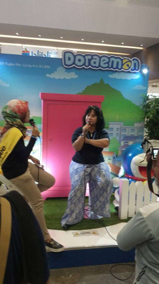 Penulis (kiri) bersama Nurhasanah sang seiyuu Doraemon (kanan)