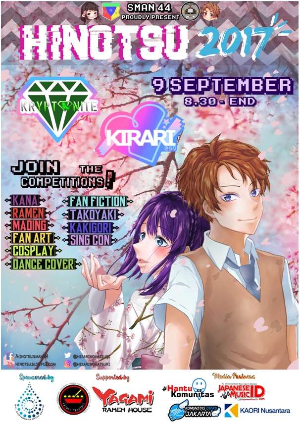 Hikari no Matsuri (Hinotsu) 2017, salah satu festival budaya Jepang tingkat SMA di Jakarta Timur akan segera hadir kembali pada 9 September 2017. Acara tahun ini bertempat di SMAN 44 Jakarta Timur dengan tema “Serenity in Kamakura “