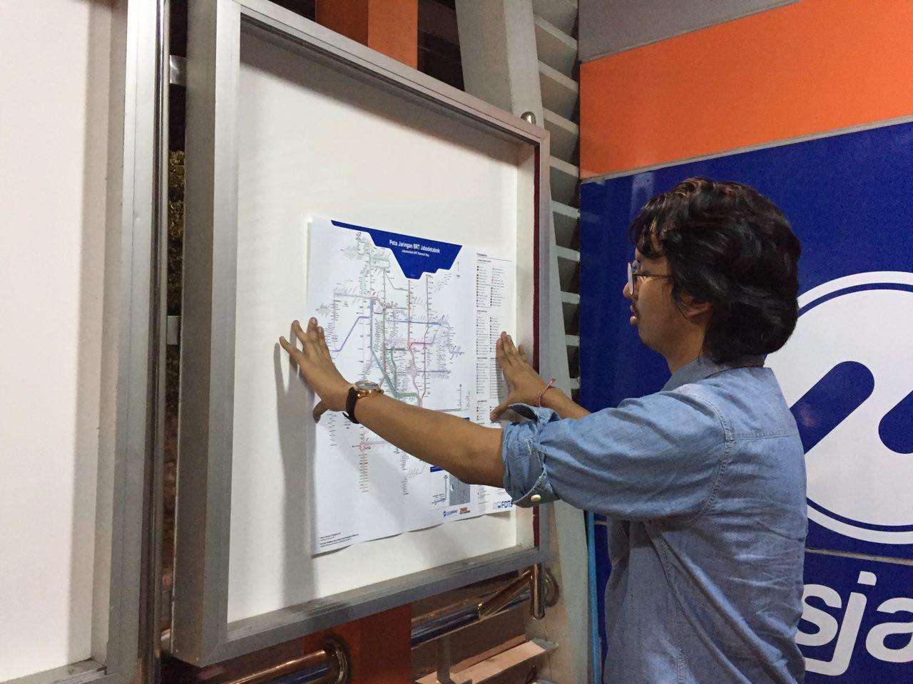 Aksi dimulai pada pukul 10 malam. Setelah melewati rutinitas siang hari sebagai seorang weaboo yang panjang dan melelahkan, kami bersama Yasin dan Fagra bergerak dari kawasan Blok M. Setelah beberapa hari sebelumnya mereka memasang signage petunjuk halte dan peta rute di halte Blok M, Mayestik, dan Tirtayasa, sasaran mereka kali ini adalah halte Adam Malik, Puri Beta, dan Tendean.