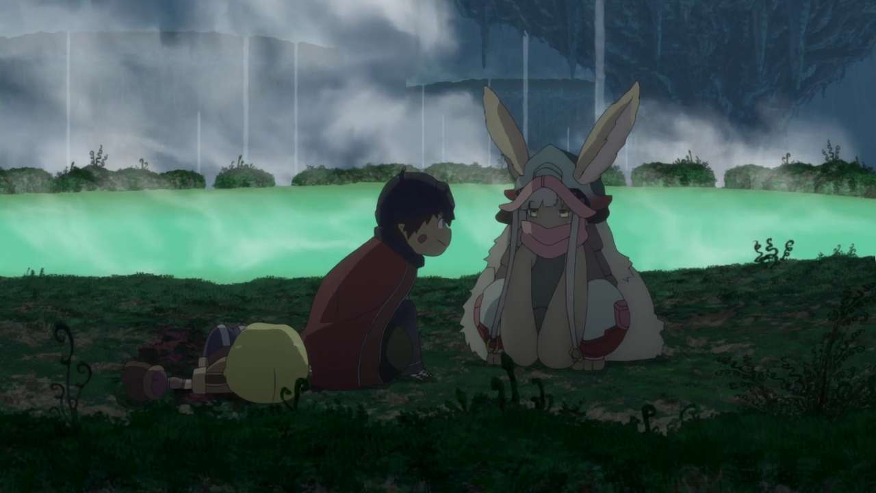 Kedua penjelajah kecil dari Ōsu ini telah tiba di tingkat keempat, Cawan Raksasa. Meneruskan langkah mereka, Reg merasakan keberadaan misterius yang mengintai mereka dari balik kabut. Ketika mereka berdua mencoba lari, sosok misterius itu, monster berkaki empat berjuluk orbed-splitter, menghentikan langkah mereka. Reg bersiap menghadapinya, namun Riko yang ketakutan mencegahnya. Mencoba melarikan diri, serangan orbed-splitter menyentakkan beliung Lyza; durinya yang beracun menusuk Riko. Reg yang panik menjulurkan tangannya ke atas untuk kabur, memaksa Riko menahan sakitnya kutukan Abyss. Melihat sahabatnya yang hampir meninggalkannya, Reg meratap putus asa. Seolah menjawab ratapannya, sosok misterius datang menghampiri dan menawarkan bantuan. Sosok itu adalah Nanachi.