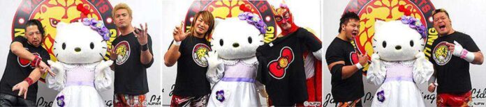 Sebagai kelanjutan dari kolaborasi antara New Japan Pro Wrestling dengan Hello Kitty yang telah diumumkan sebelumnya, keenam pegulat dari New Japan Pro Wrestling ini mempromosikan T-Shirt bertema karakter maskot yang akan berulang tahun ke 40 tersebut. keenam orang ini adalah Shinsuke Nakamura, Juara Versi IWGP Kazuchika Okada, Juara Interkontinental Versi IWGP Hiroshi Tanahashi, Captain New Japan, Juara Dunia Versi NWA Satoshi Kojima, dan Hiroyoshi Tenzan. Simak bagaimana para Pegulat-Pegulat ini bercengkrama dengan Hello Kitty :