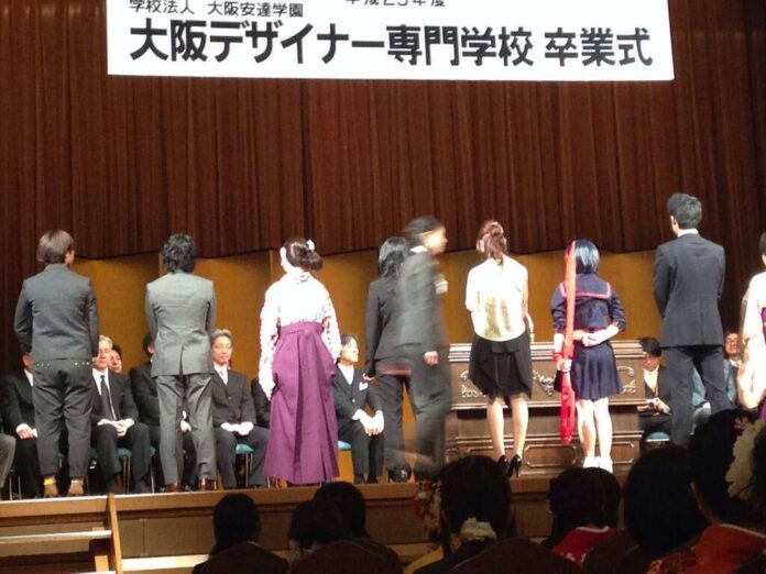 Dalam foto yang diambil oleh pengguna Twitter ini, tampak salah satu siswa sekolah kejuruan Institut Desain Kyoto mengunakan busana unik.