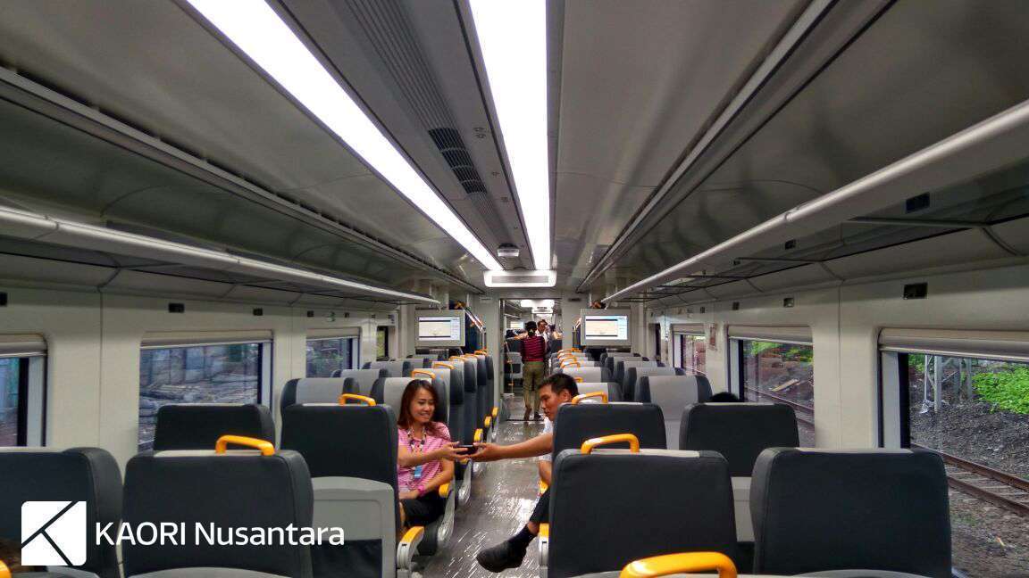 Selama di perjalanan, KAORI menikmati beberapa fasilitas di dalam rangkaian KRL yang memberikan kenyamanan lebih bagi penumpang. Reclining seat (kursi yang sandarannya dapat diubah kemiringannya) yang cukup nyaman, ruang kaki yang sangat lega -meski tanpa sandaran kaki (footrest)- dan lubang daya model Universal Serial Bus (USB) untuk melakukan pengisian baterai gawai, dengan dua pilihan keluaran arus yang berbeda (1 dan 2 Ampere). Selain itu, terdapat tempat untuk meletakkan koper, layar informasi serta toilet yang terpisah, khusus urinoir (khusus buang air kecil bagi pria) dan kloset duduk.