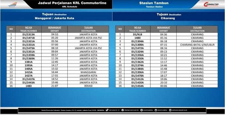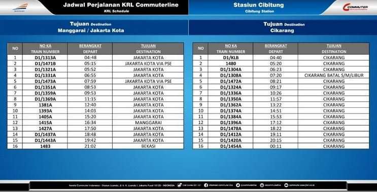 Berikut adalah jadwal perjalanan KRL Commuter Line lintas Cikarang: