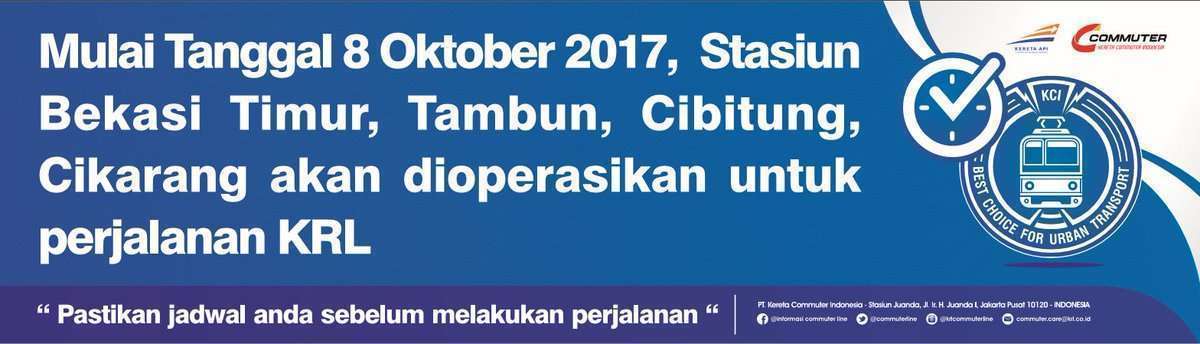 KCI, melalui media sosial Twitter-nya telah merilis informasi tanggal mulai beroperasinya perjalanan KRL Commuter Line hingga Stasiun Cikarang. Selain itu, informasi terkait jadwal perjalanan di tiap-tiap stasiun di lintas Bekasi hingga Cikarang juga telah diposting.