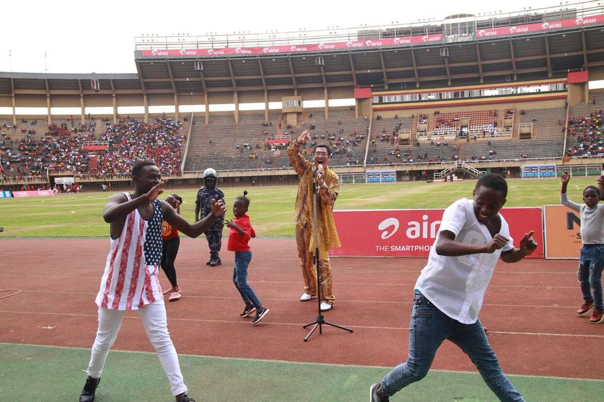 Dirinya juga sempat bertemu dengan anggota tim sepakbola nasional Uganda, di mana tak lupa sang penyanyi tersebut turut mengajarkan dansa PPAP, supaya timnas Uganda bisa berdansa PPAP tiap kali mencetak gol