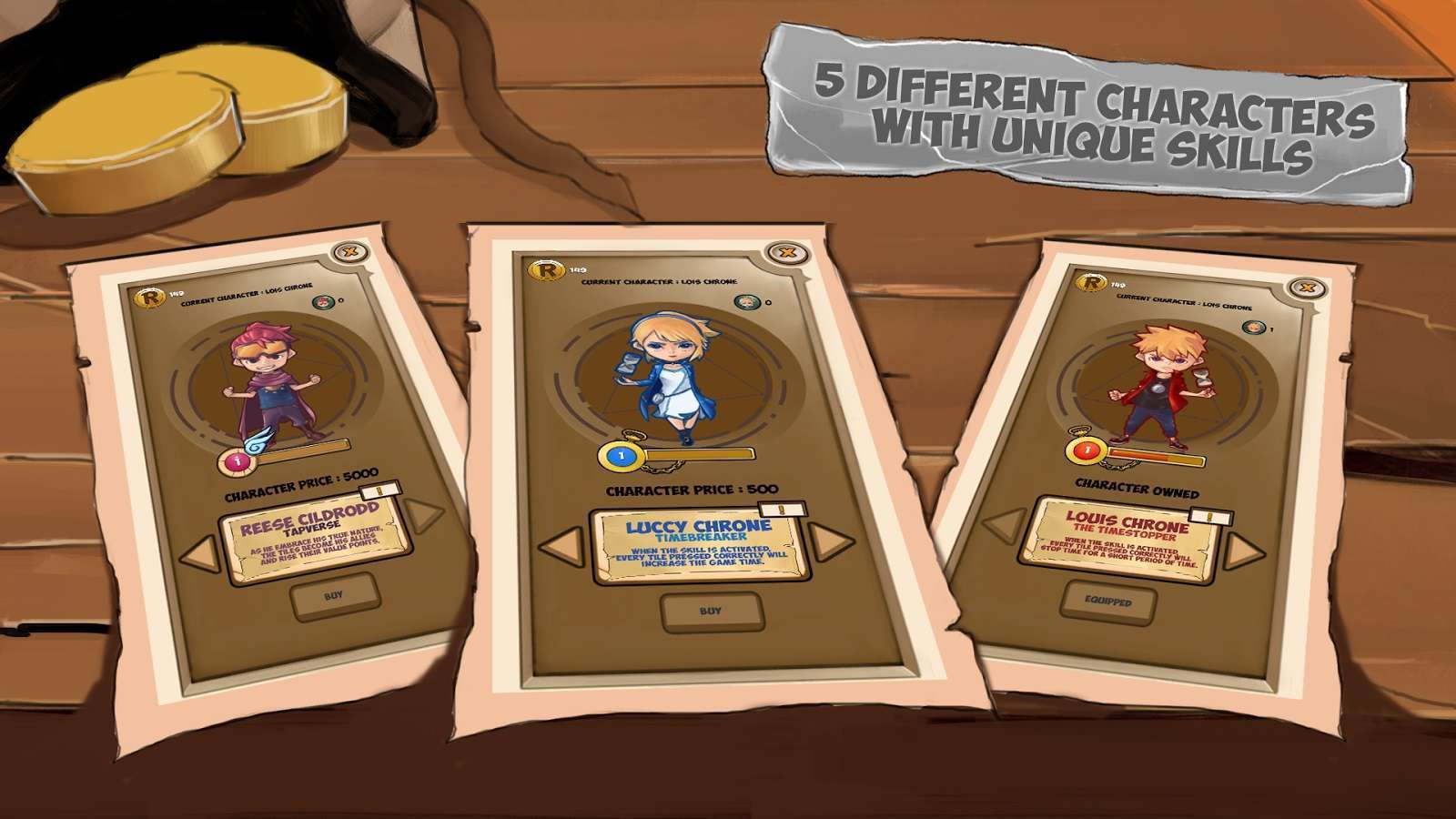 - 4 peti harta berbeda yang bisa didapatkan untuk membantu permainan.