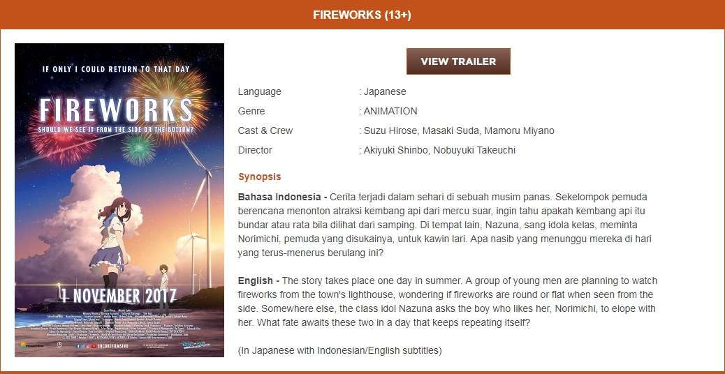 Mulai 1 November FIREWORKS tayang di Cinemaxx! Kamu suka film anime? Pastikan kamu nonton film ini ya! pic.twitter.com/WmWXtSAovw