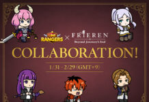 Frieren, Fern, Stark, Sein, dan Aura muncul sebagai Rangers kolaborasi! Ayo mainkan mereka dalam LINE Rangers! Dijamin seru!