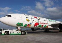 Kini Hello Kitty muncul pada maskapai penerbangan Taiwan Eva Air.